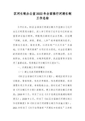 区河长制办公室2022年全面推行河湖长制工作总结.docx
