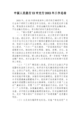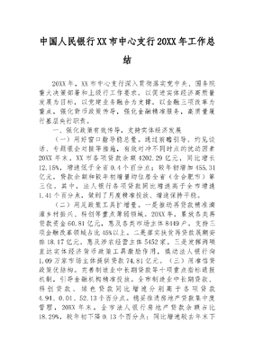 中国人民银行XX市中心支行20XX年工作总结.docx