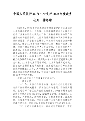 中国人民银行XX市中心支行2022年度政务公开工作总结.docx
