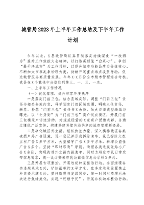 城管局2023年上半年工作总结及下半年工作计划.docx