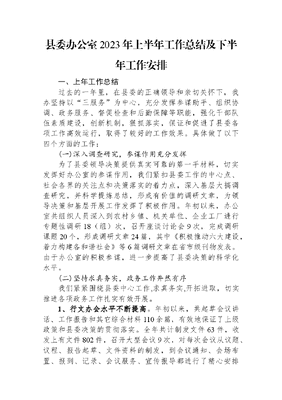 县委办公室2023年上半年工作总结及下半年工作安排.docx