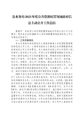 县水务局2023年度公共资源配置领域政府信息主动公开工作总结.docx
