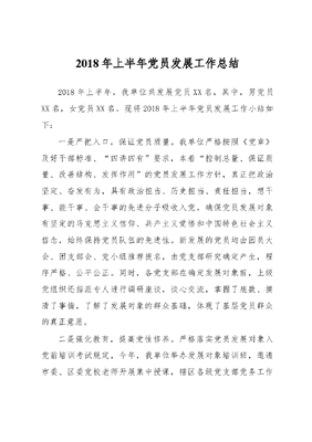 2018年上半年党员发展工作总结(范文).docx