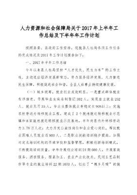 人力资源和社会保障局关于2017年上半年工作总结及下半年年工作计划.docx