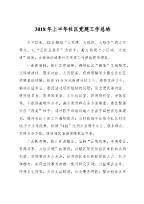 2018年上半年社区党建工作总结.docx