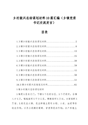 (10篇)乡村振兴总结谋划材料汇编(乡镇党委书记交流发言).docx