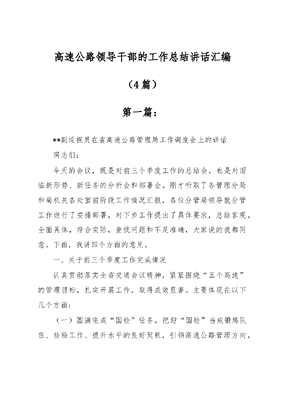 (4篇)高速公路领导干部的工作总结讲话汇编.docx