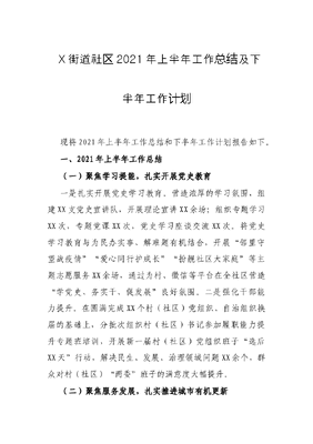 X街道社区2021年上半年工作总结及下半年工作计划.docx
