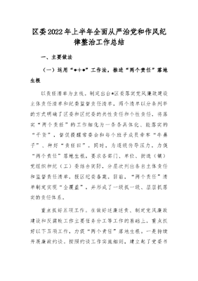 区委2022年上半年全面从严治党和作风纪律整治工作总结.docx