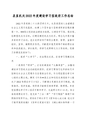 县直机关2022年度建设学习型政府工作总结.doc