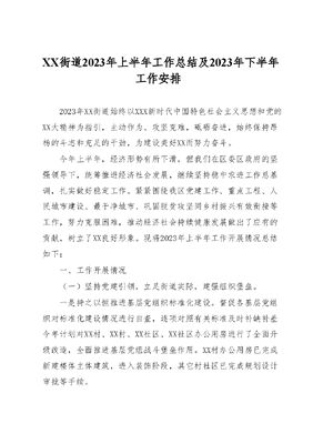XX街道2023年上半年工作总结及2023年下半年工作安排.docx
