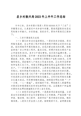 县乡村振兴局2023年上半年工作总结.docx