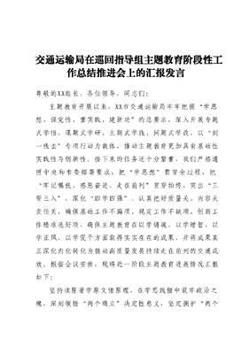交通运输局在巡回指导组主题教育阶段性工作总结推进会上的汇报发言.docx