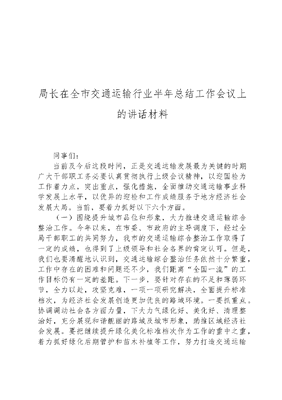 局长在全市交通运输行业半年总结工作会议上的讲话材料.docx