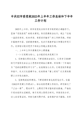 中共XX市委党校2023年上半年工作总结和下半年工作计划.docx