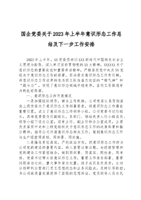 国企党委关于2023年上半年意识形态工作总结及下一步工作安排.docx