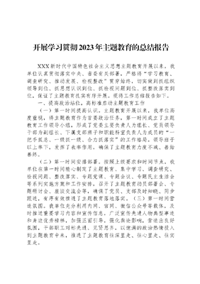 开展学习贯彻2023年主题教育的总结报告.docx