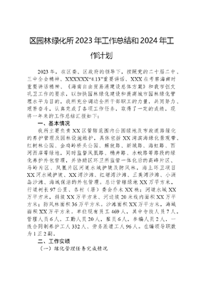 区园林绿化所2023年工作总结和2024年工作计划.docx