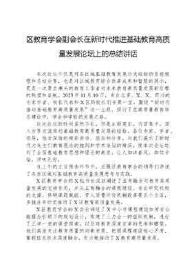区教育学会副会长在新时代推进基础教育高质量发展论坛上的总结讲话.docx