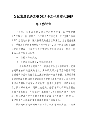 X区直属机关工委2019年工作总结及2019年工作计划.docx