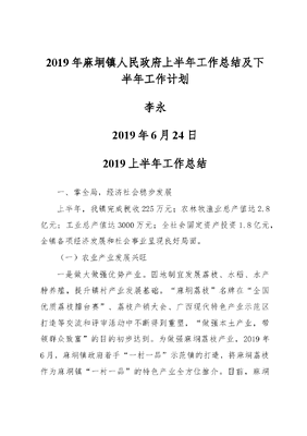 2019年麻垌镇人民政府上半年工作总结及下半年工作计划.docx