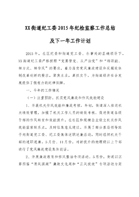 XX街道纪工委2015年纪检监察工作总结及下一年工作计划.doc