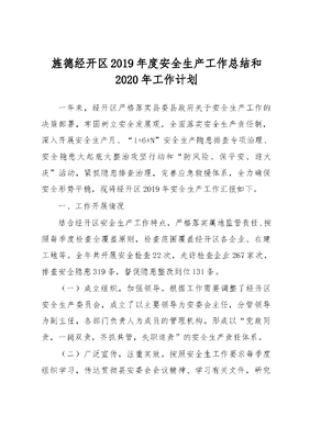 旌德经开区2019年度安全生产工作总结和2020年工作计划.docx