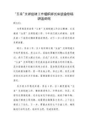 “五星”支部创建工作组织部长座谈会总结讲话提纲.docx