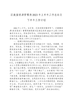 区数据资源管理局2023年上半年工作总结及下半年工作计划.docx