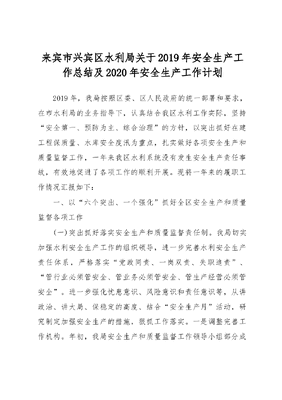 来宾市兴宾区水利局关于2019年安全生产工作总结及2020年安全生产工作计划.docx