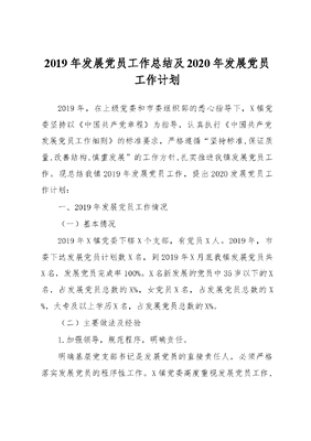 2019年发展党员工作总结及2020年发展党员工作计划.docx