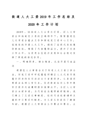 2020街道人大工委2019年工作总结和2020年工作计划.docx