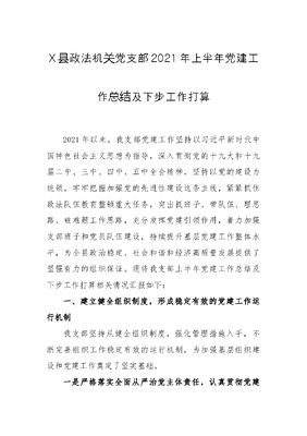 20210801X县政法机关党支部2021年上半年党建工作总结及下步工作打算.docx