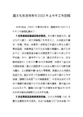 县文化旅游体育局2022年上半年工作总结.docx