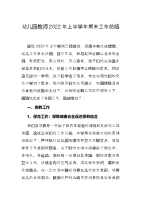 幼儿园教师2022年上半学年期末工作总结.docx