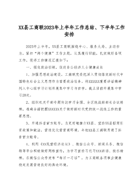 XX县工商联2023年上半年工作总结、 下半年工作安排.docx