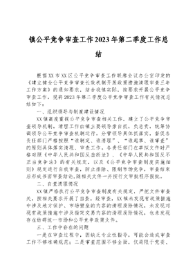 镇公平竞争审查工作2023年第二季度工作总结.docx