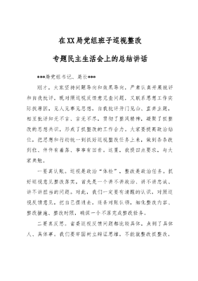 在局党组班子巡视整改专题民主生活会上的总结讲话.docx