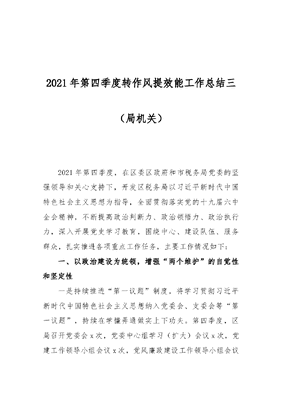 2021年第四季度转作风提效能工作总结三(局机关).docx
