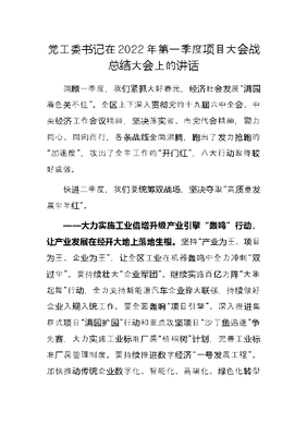 党工委书记在2022年第一季度项目大会战总结大会上的讲话.docx