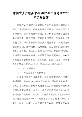 市国有资产服务中心2022年工作总结2023年工作打算.docx