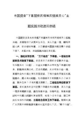市国资委“下基层 察民情 解民忧 暖民心”主题实践活动进展总结.docx