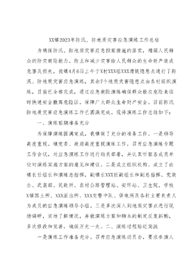 XX镇2023年防汛、防地质灾害应急演练工作总结.docx