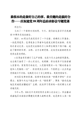 最根本的是做好自己的事,最关键的是搞好合作——庆祝建党99周年总结表彰会专题党课.doc