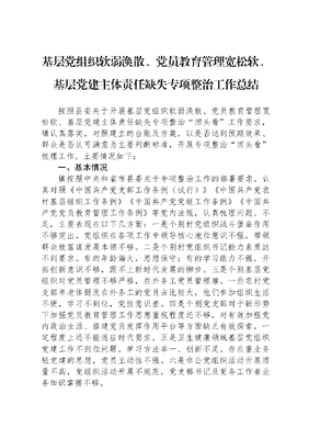 基层党组织软弱涣散、党员教育管理宽松软、基层党建主体责任缺失专项整治工作总结.docx