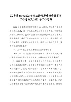 XX市重点处2022年度法治政府建设责任落实工作总结及2023年工作思路.docx