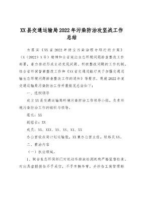 XX县交通运输局2022年污染防治攻坚战工作总结.docx