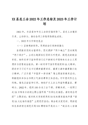 XX县总工会2022年工作总结及2023年工作计划.docx