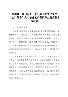京津冀一体化背景下卫生职业教育“校院(企)融合”人才培养模式创新与实践成果总结报告.docx