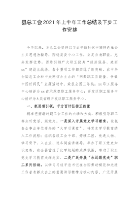 县总工会2021年上半年工作总结及下步工作安排.docx
